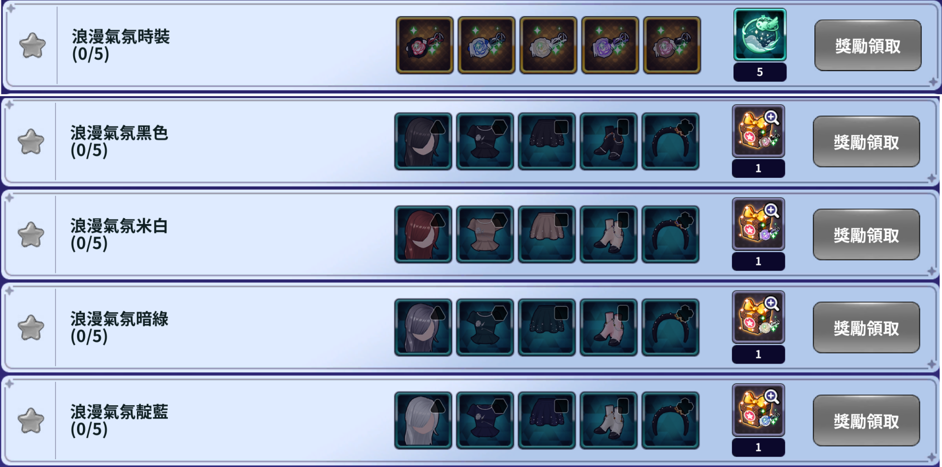 - 獲得符合每個收集獎勵的時裝,當符合條件時,就可以獲得收集獎勵。