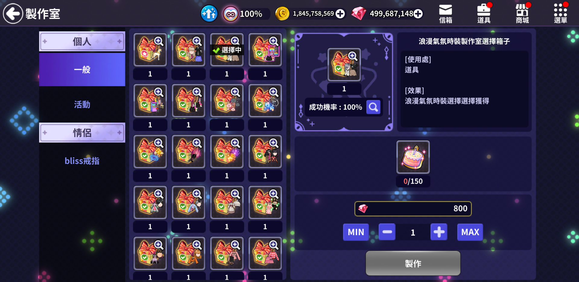 1 | (NEW) 로맨틱 무드 코스튬 선택 박스 | 1 | 150 | 800 | 100% | 0% | 0% | |