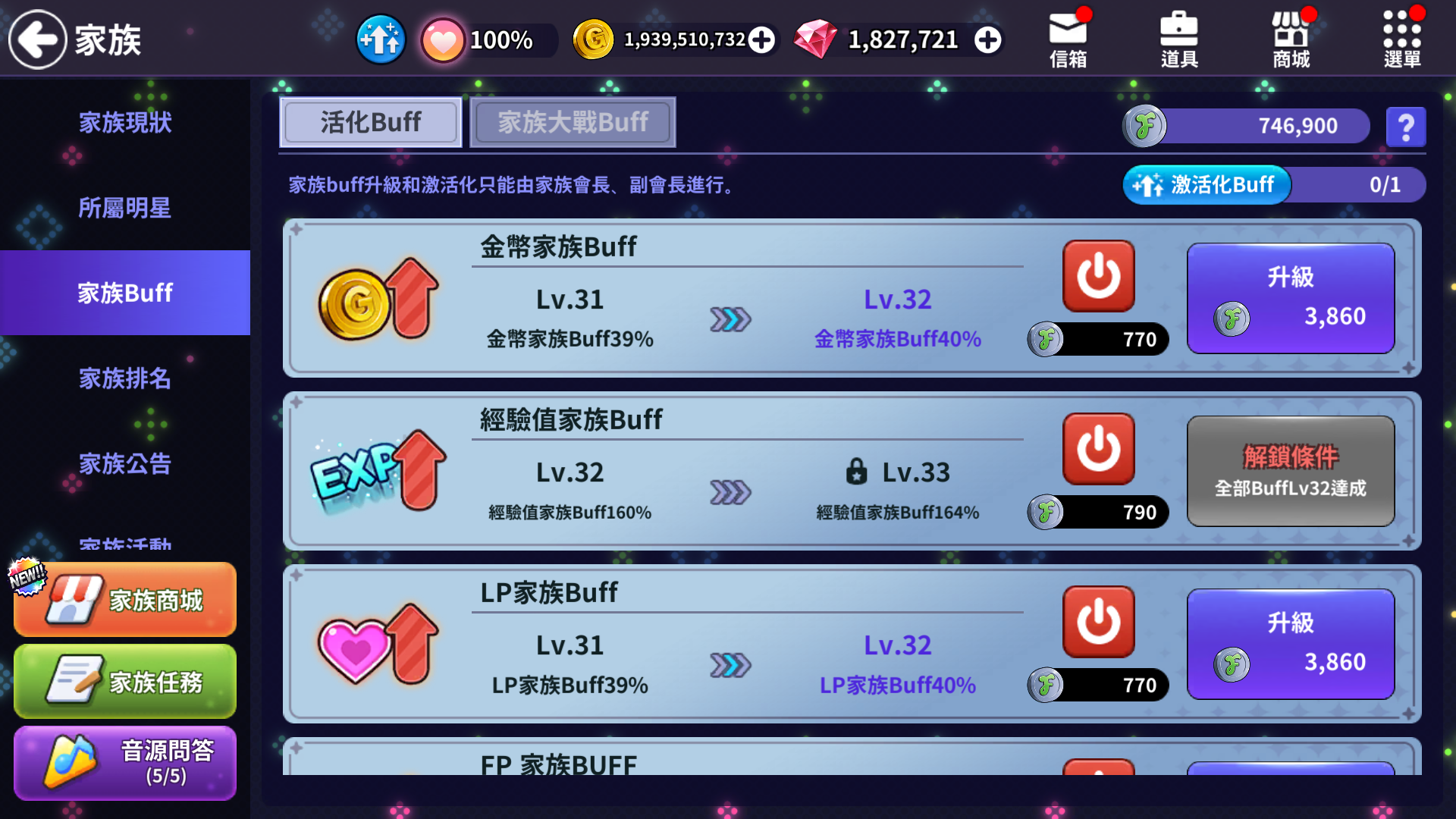 - 活動期間家族EXP Buff提升4倍。