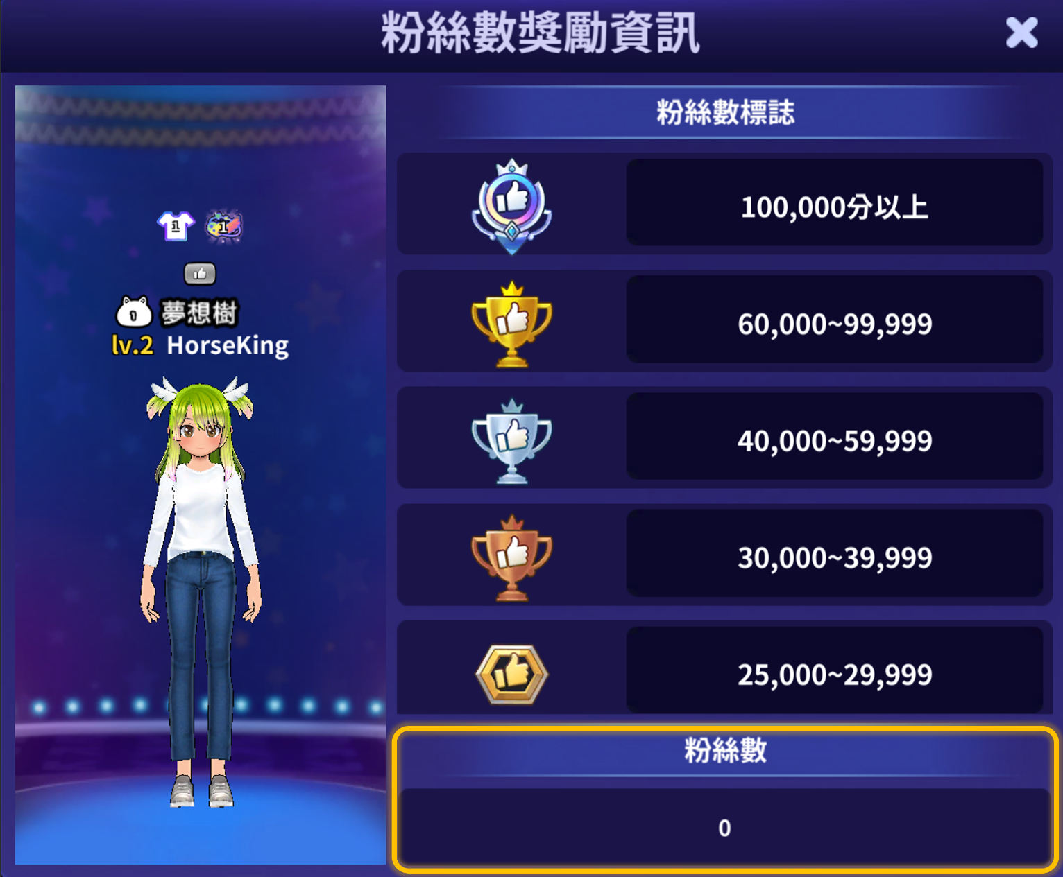 點擊按讚圖標時,可以確認粉絲獎勵資訊(粉絲數標誌,我的粉絲數)。