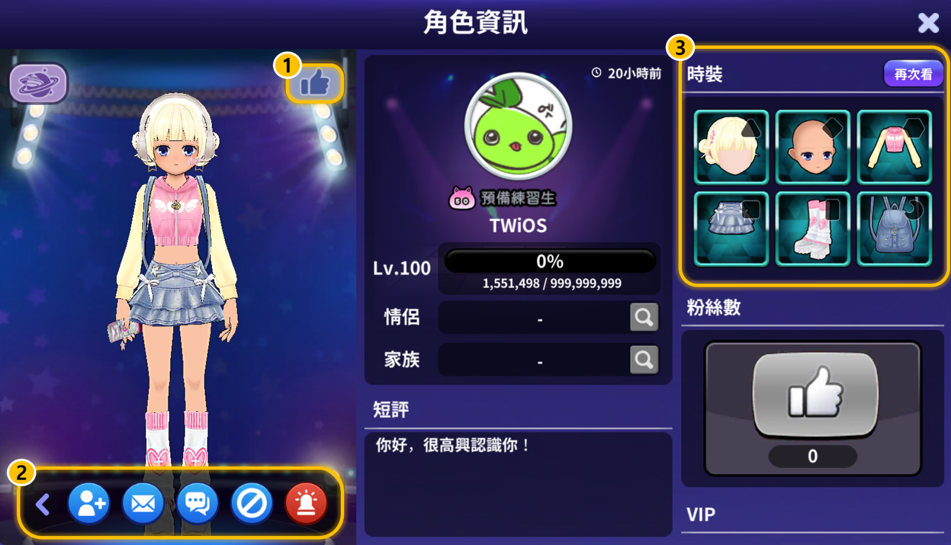 ① 星球: 可以在角色資訊中選擇是否顯示星球 。