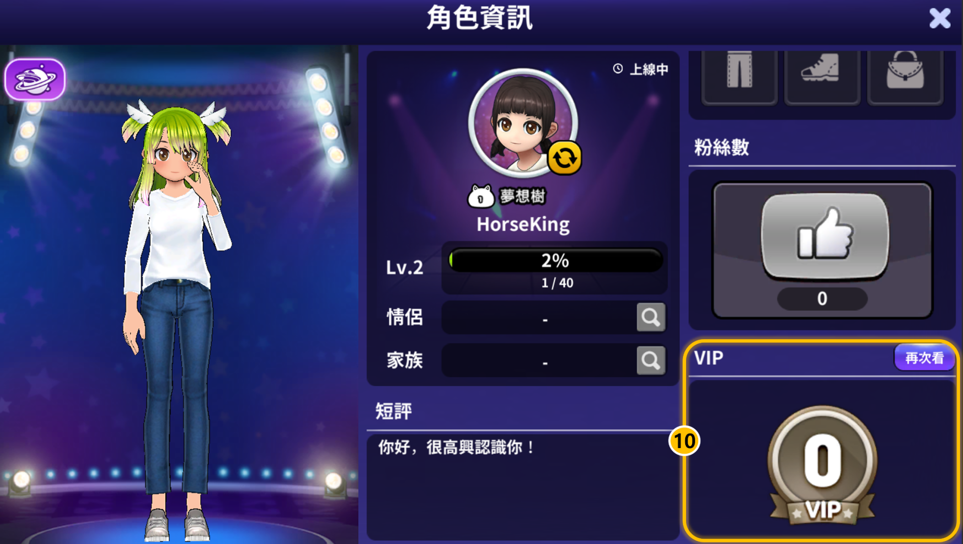 ④ 遊戲資訊: 可以查看我的明星等級、暱稱、情侶資訊、家族資訊。