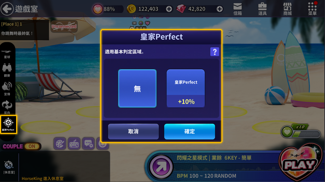 點擊[遊戲室]-[左側]-[皇家完美]時可進行設置。