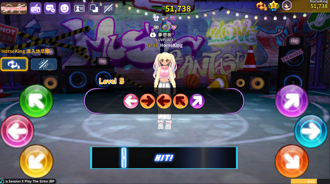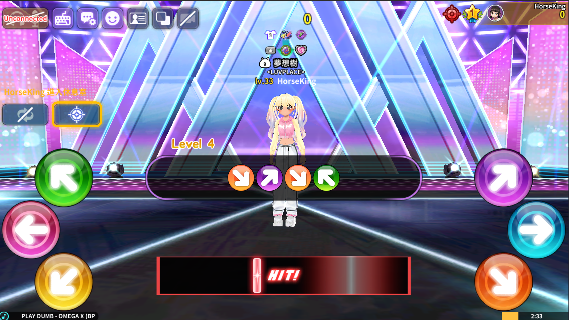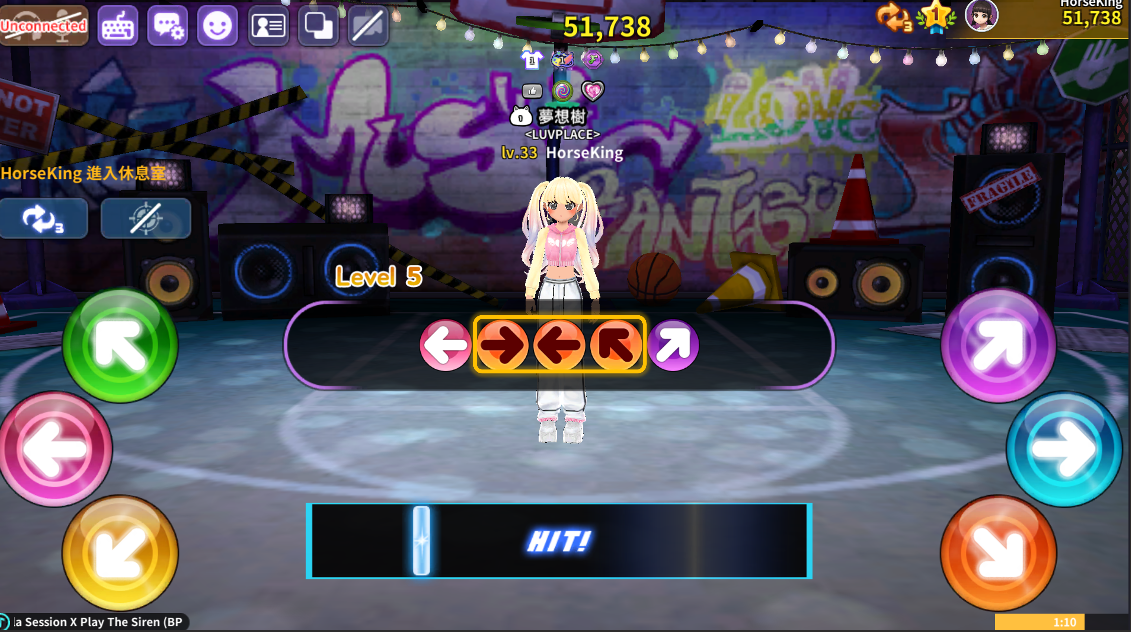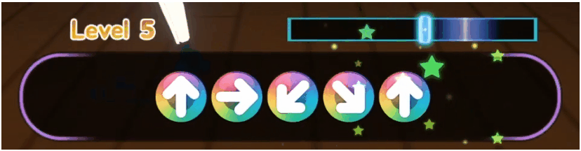 輸入方向鍵後,需要將左向右移動的判定線對準判定區域輸入,才能獲得最終的分數。