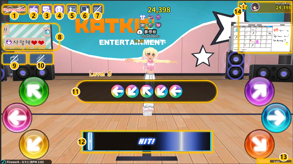 判定線的速度根據音樂的速度[BPM]緩慢或快速移動,如果準確對準4個節拍,就能獲得好的判定。