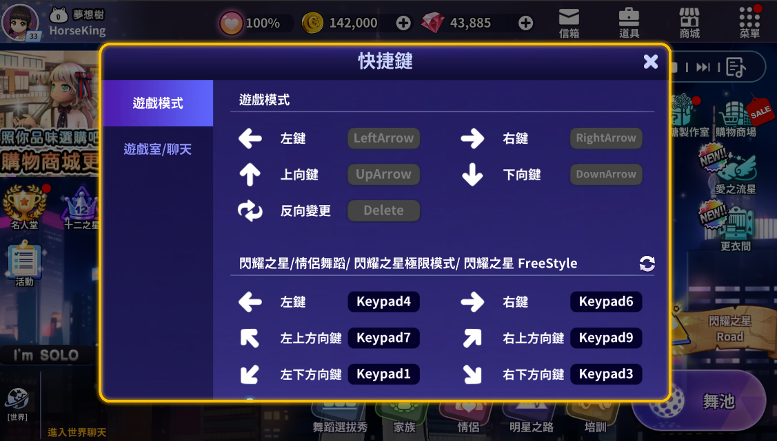 可以分為閃耀之星/情侶舞蹈/極限/Freestyle、經典、節拍、波浪星共4種進行設置。