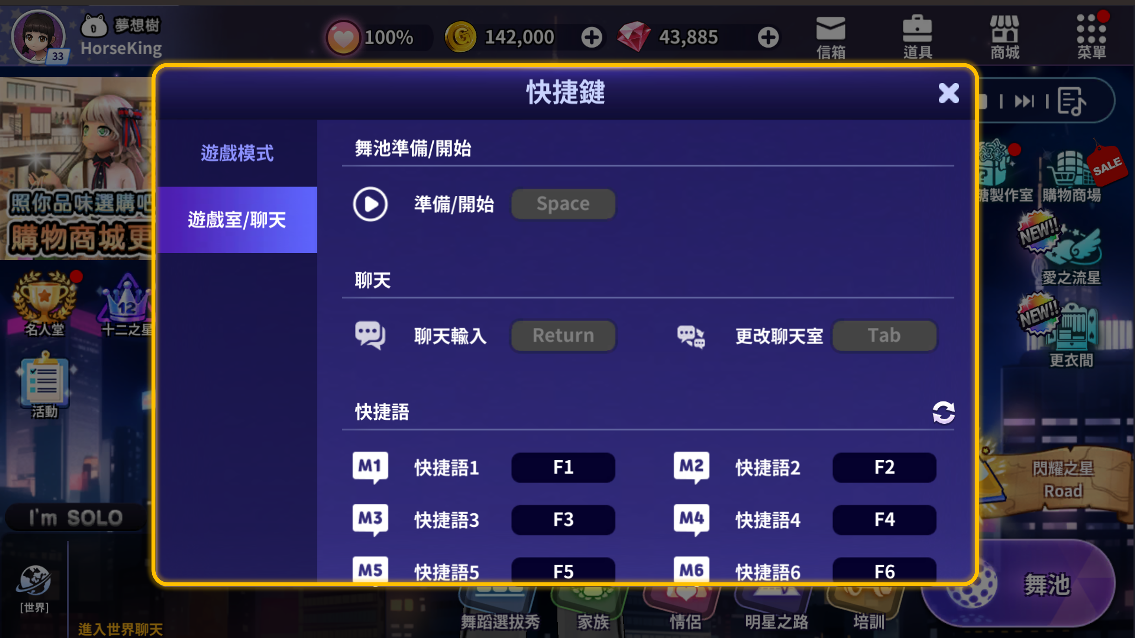 [菜單] - 點擊[快捷鍵]時可設置遊戲玩法快捷鍵或快捷語。