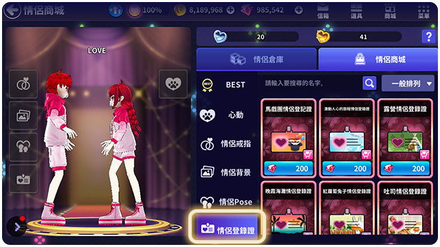 ■ 情侶登記證可以在情侶商城購買並裝飾。