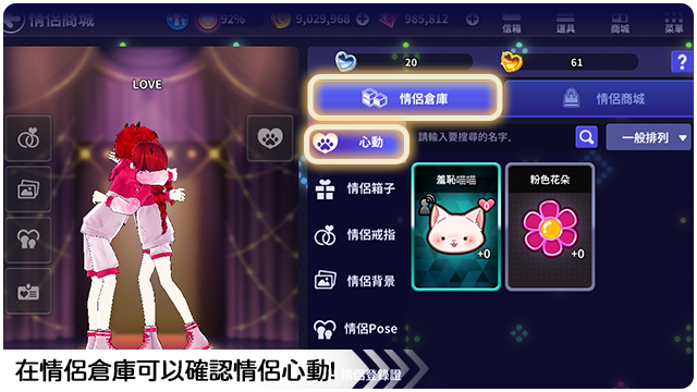 ■ 在情侶倉庫心動標籤,可以確認情侶持有的心動信息。