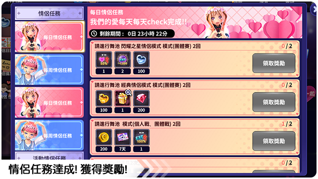 ■ 情侶任務獎勵,可以獲得情侶心動。