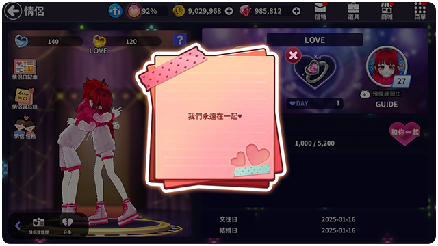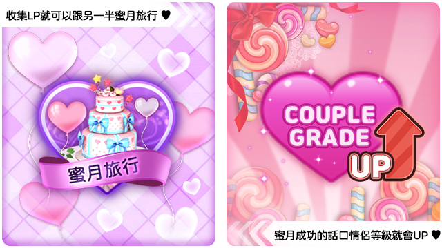 ■ 收集LP進行蜜月時,可以提升到下一個情侶等級。