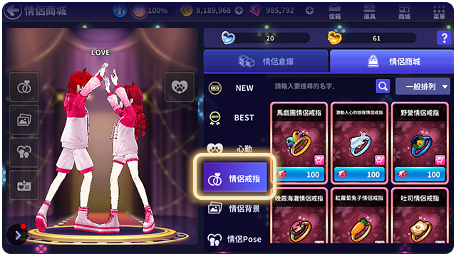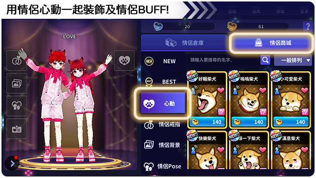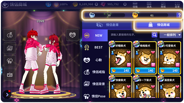 ■ 情侶共同財產銀色情侶硬幣和黃金情侶硬幣也可以購買情侶商品。