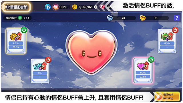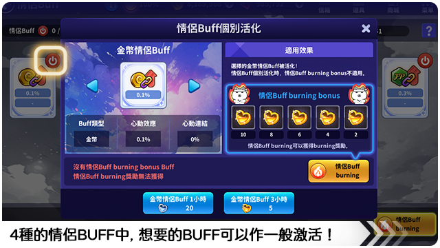 ■ 情侶Buff Burning可以一次性激活四種情侶 Buff。
