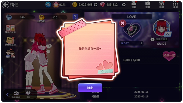 ■ 在情侶申請彈窗中接受情侶或情侶 – 在告白中接受告白的話,可以成為情侶。