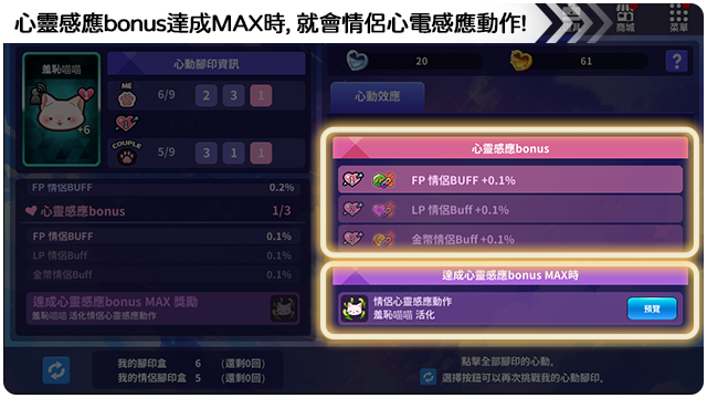 ■ 使用心動連結時,可增加情侶Buff bonus效果。