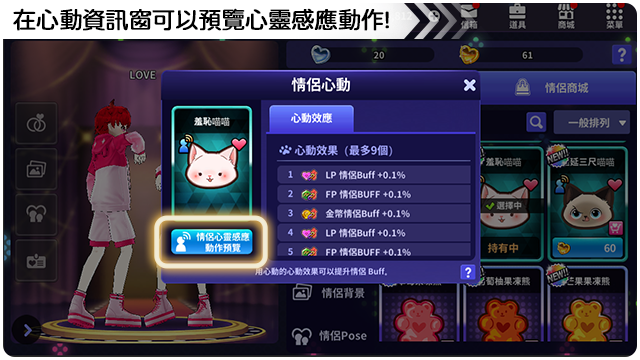 ■ 可以在心動信息中預覽 情侶心靈感應動作。