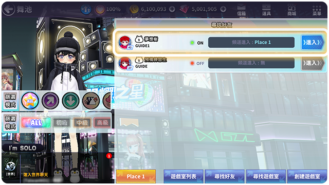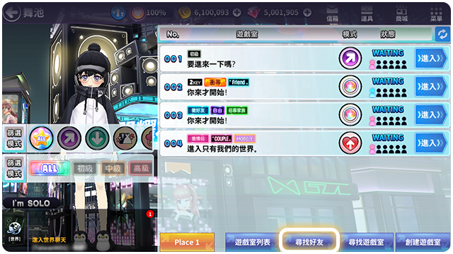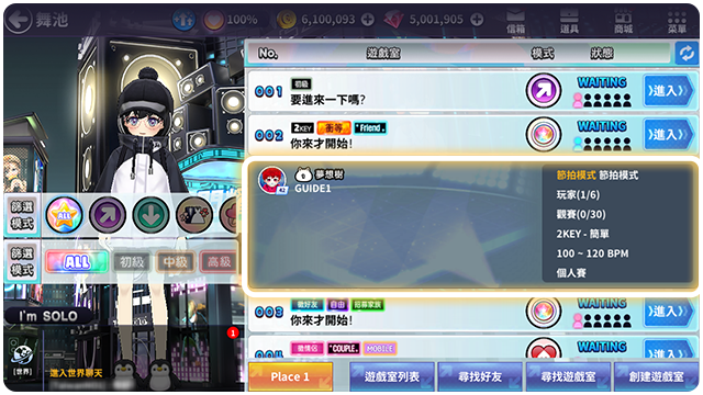 ■ 尋找遊戲室: 可以找到自己喜歡的遊戲室入場。