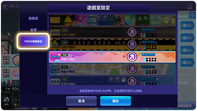 ■ 套用遊戲室PRIME Buff時,可以套用遊戲室PRIME橫幅。