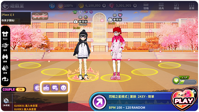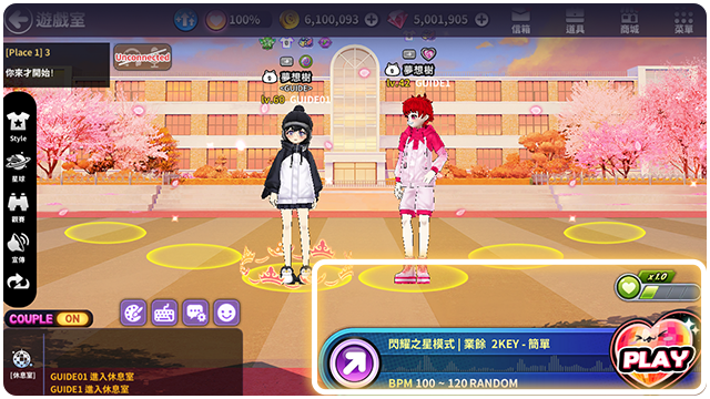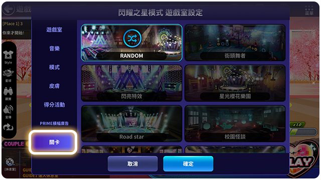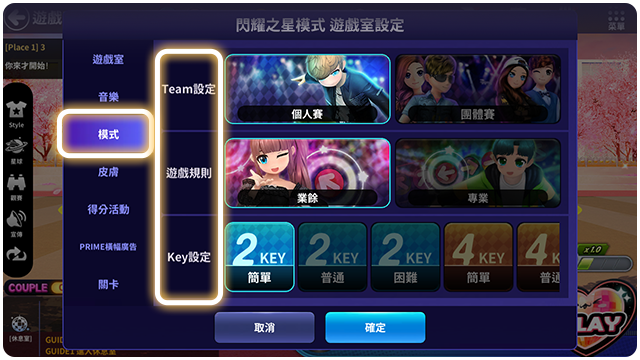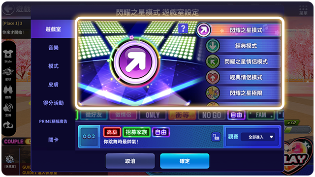 ■ ■ 根據舞池大廳設定的遊戲模式,遊戲廳裡可以選擇的遊戲模式種類會有所不同。