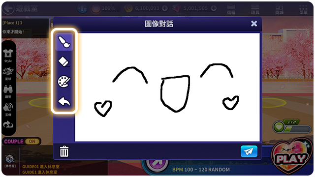 ■ 發送的圖像對話可以在左邊的調色板按鈕上確認。
