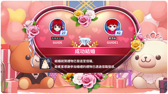 ■ 結婚成功,即可獲得結婚禮物。