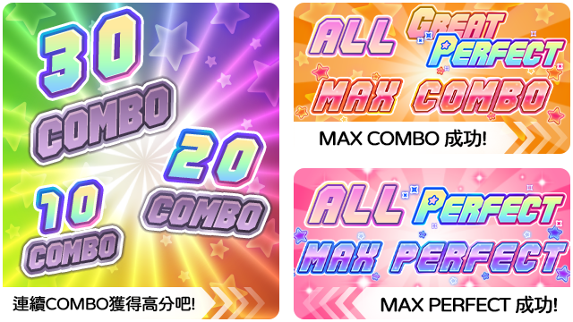 ■ 通過GREAT和PERFECT判定所有Keynote的話,MAX COMBO就能成功。