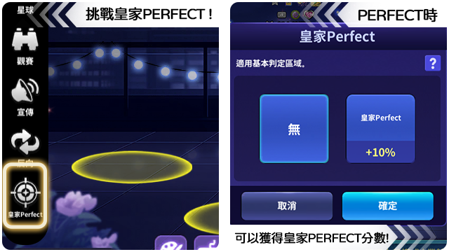 ■ 在皇家Perfect 套用狀態下,獲得PERFECT判定時,可獲得皇家Perfect 加分。