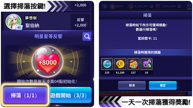 ■ 一天可以進行1次掃蕩。