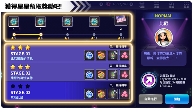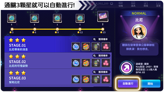 ■ 完成的關卡3星可以自動進行。