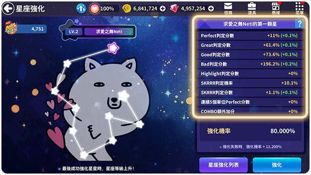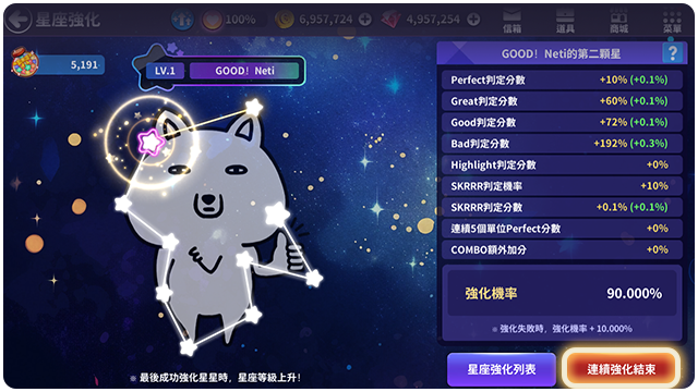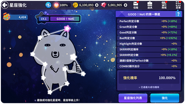 ■ 第十個星星強化成功的話,星座等級會上升。