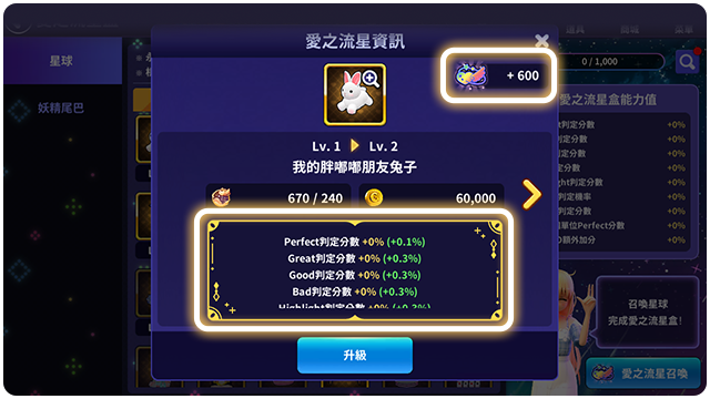■ 集滿愛之流星盒經驗值可以提升愛之流星盒等級。
