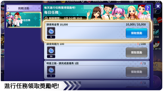 ■ 活動任務中的每日任務每天AM 03:00初始化。
