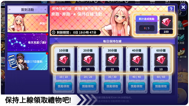 ■ 保持在線獎勵會每天初始化。