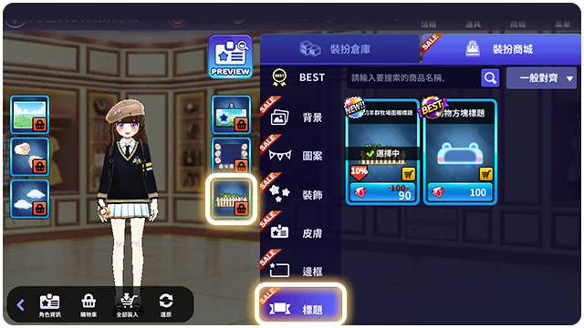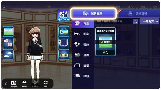 ■ 裝飾倉庫可以確認和穿戴持有的商品。