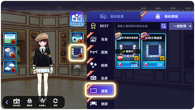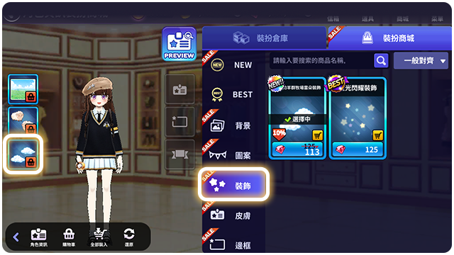 ■ 可以購買角色資訊可以裝飾的裝飾道具。