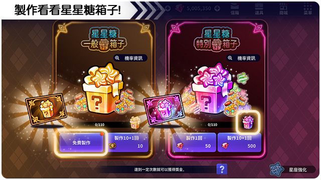 ■ 星星糖一般箱子每天可以免費製作一次。