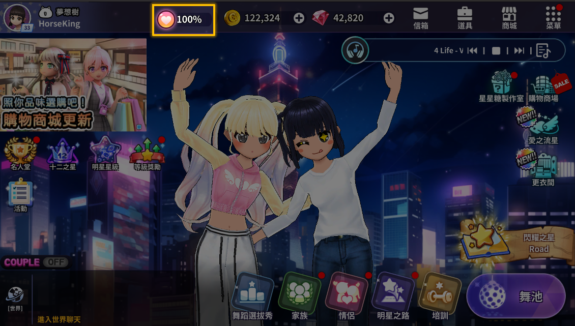 ■ 體力每5分鐘恢復1%,可通過體力恢復道具作恢復。