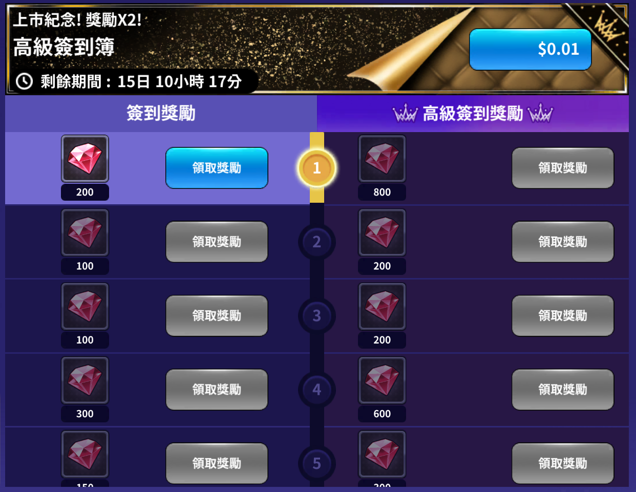 📌活動期間,高級簽到簿的獎勵增加一倍。