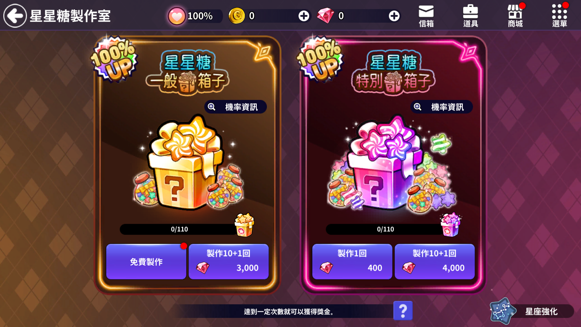 📌活動期間,在星星糖製作室進行抽取時,星星糖的獲取量將增加2倍。
