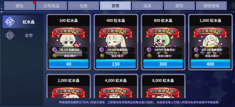 📌 活動期間在紅水晶商店首次購買商品時,贈送2倍紅水晶。