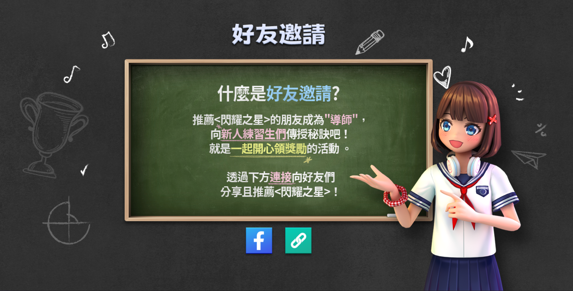 3) 好友在明日之星遇到困難時,可以透過好友(導師)應援團過關。