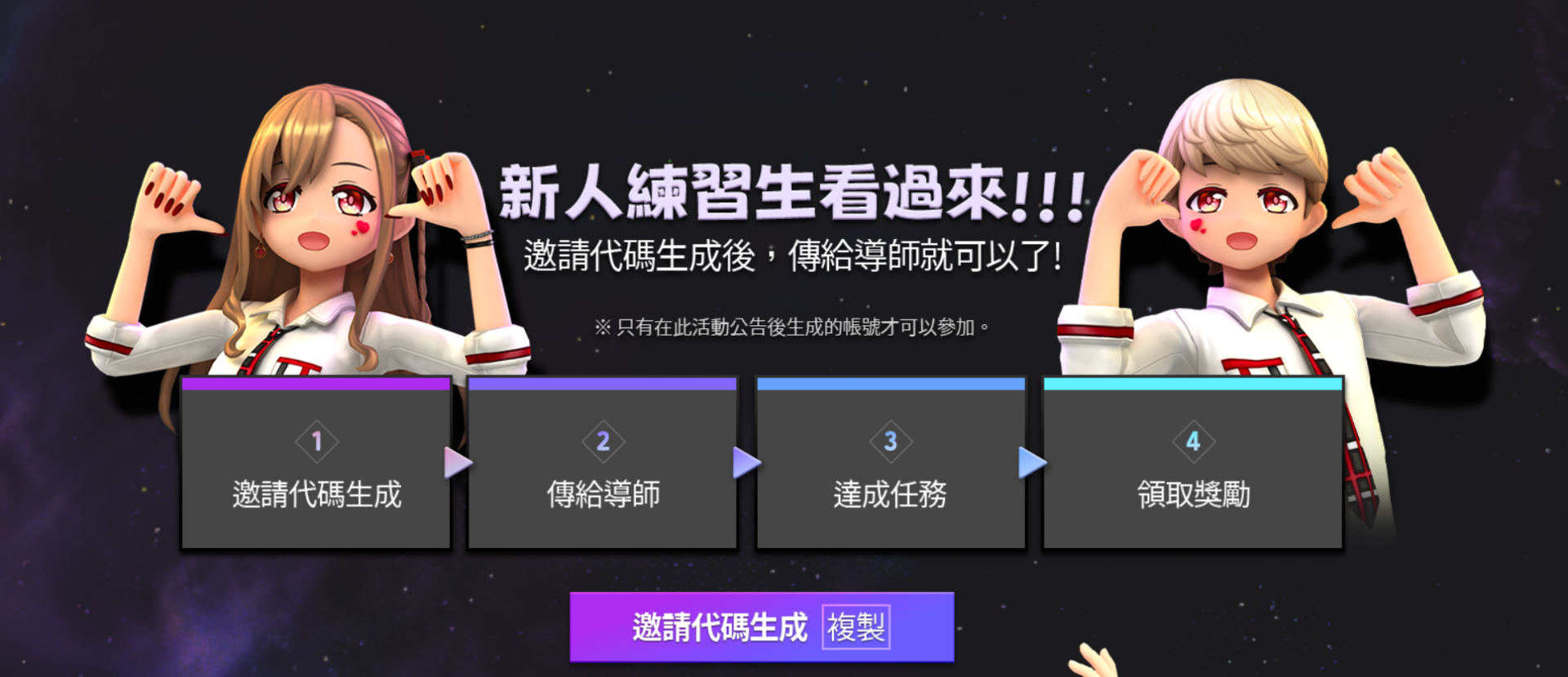 1. 邀請代碼生成 (新人練習生們)