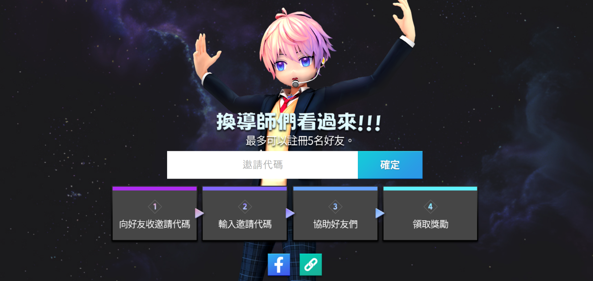1) 輸入新人練習生的邀請代碼的話,好友就登錄完成。