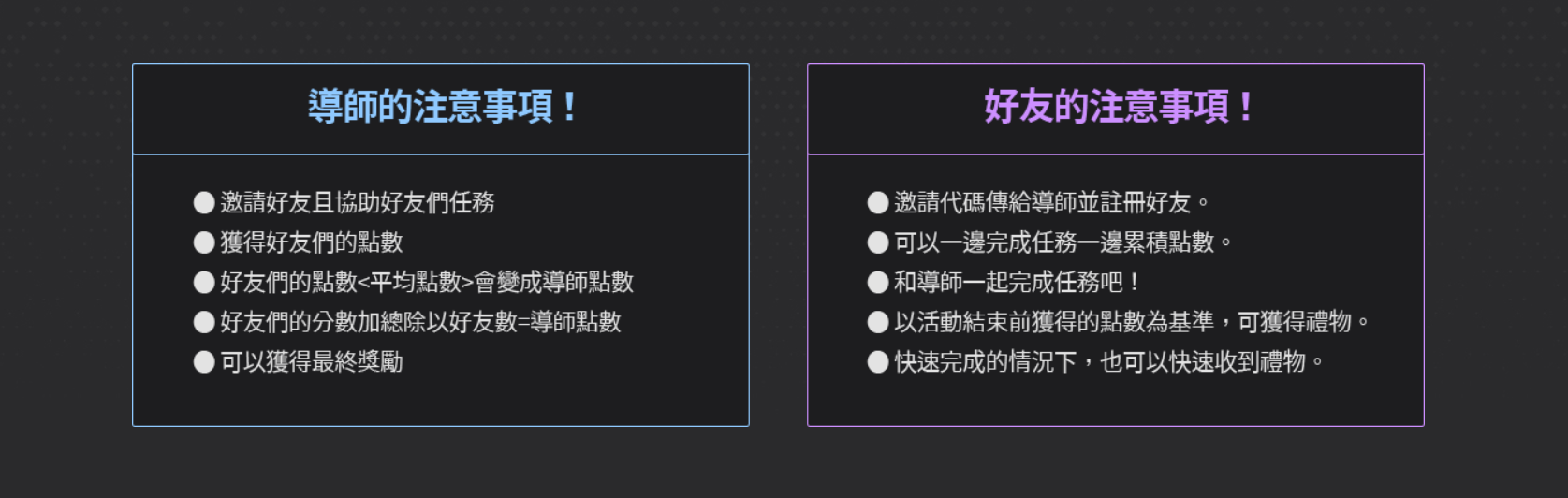2) 導師登錄5位好友,當登錄的好友全部達到任務點數100P,可以提前申請獎勵。