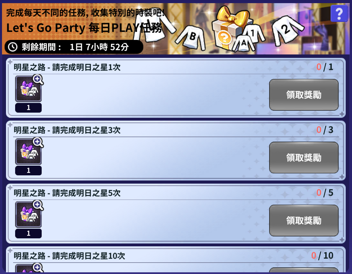 <Let's Go Party>每日PLAY任務 閃耀之星
