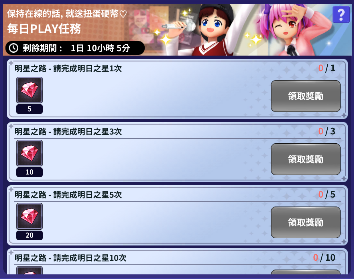 | 閃耀之星模式WOW回數 2回 | 20 紅水晶 | |
