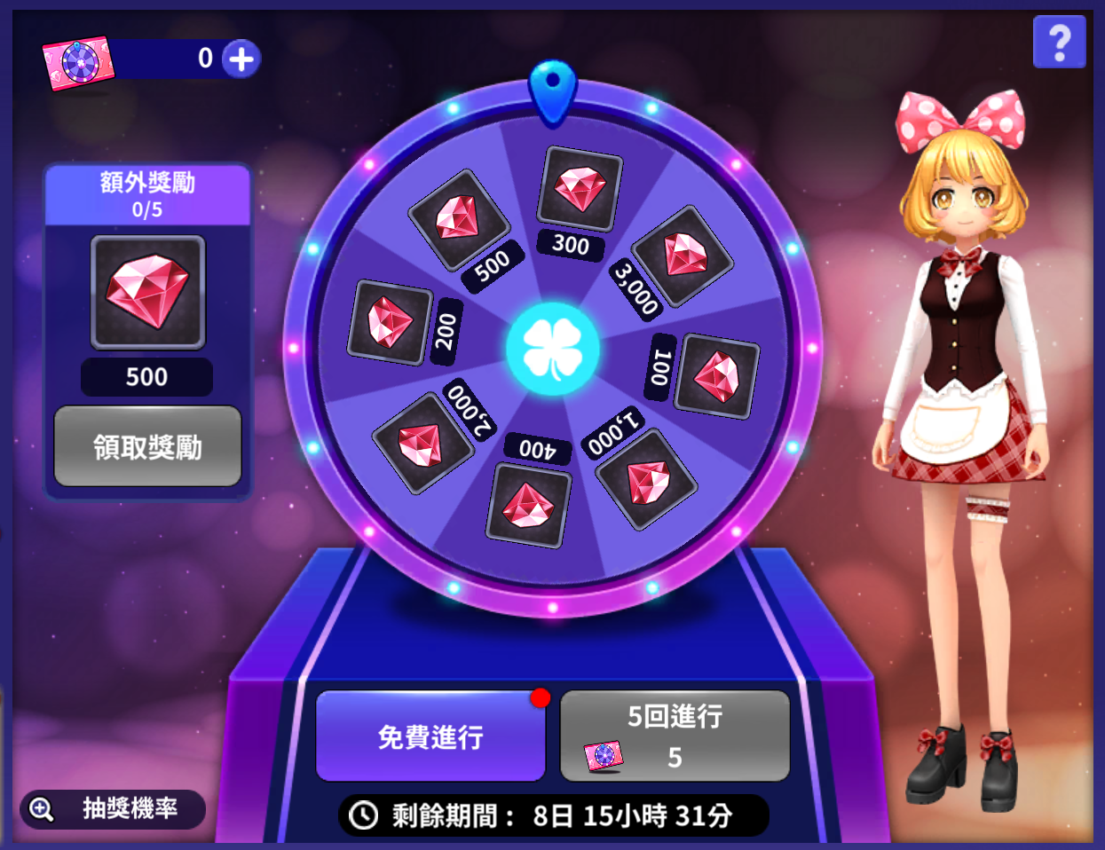 每天轉轉輪盤,靠運氣可以收集很多紅水晶!