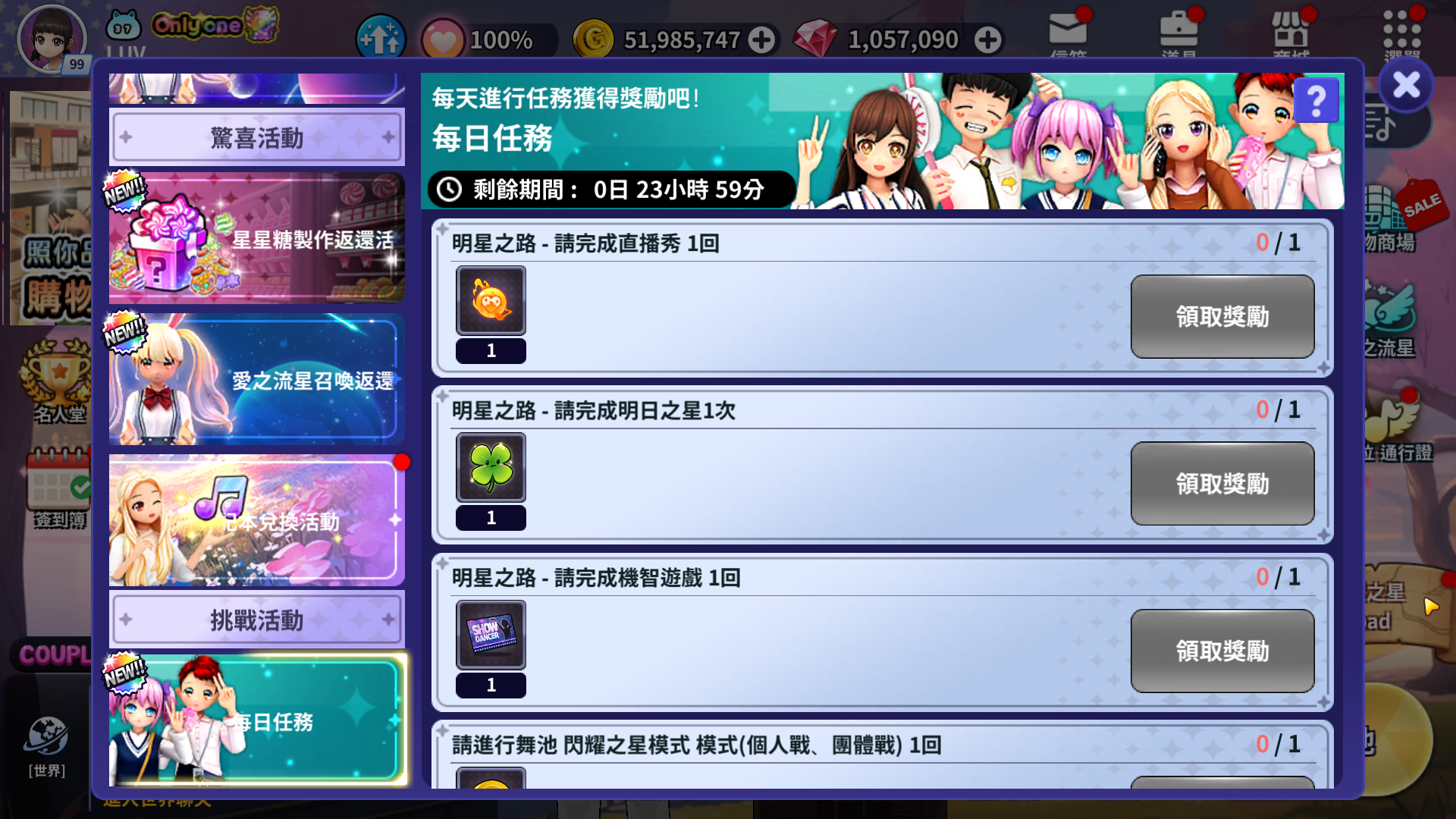 | 機智遊戲進行 1回 | 直播秀進行卡 1個 |