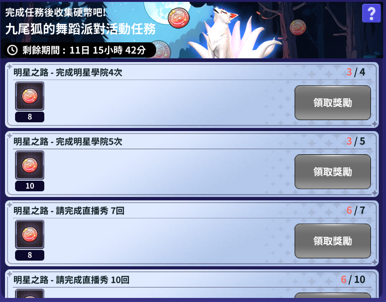 九尾狐的舞蹈派對活動任務 & 活動禮包 閃耀之星