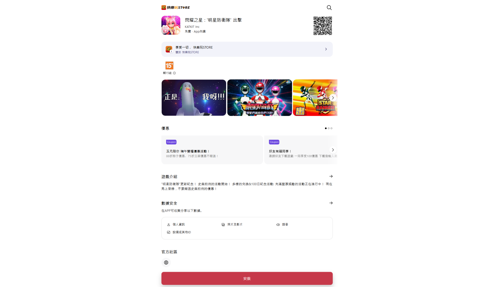 - 之前通過其他商城安裝《閃耀之星》時,快樂玩STORE就無法進行安裝,還請注意。
